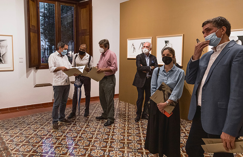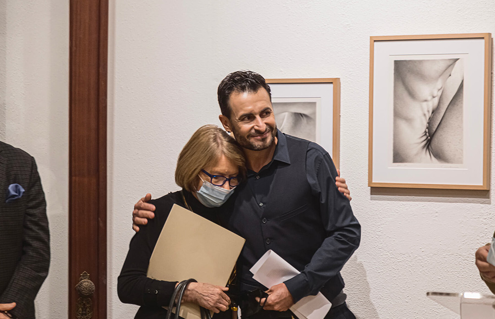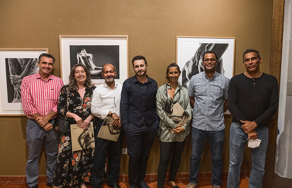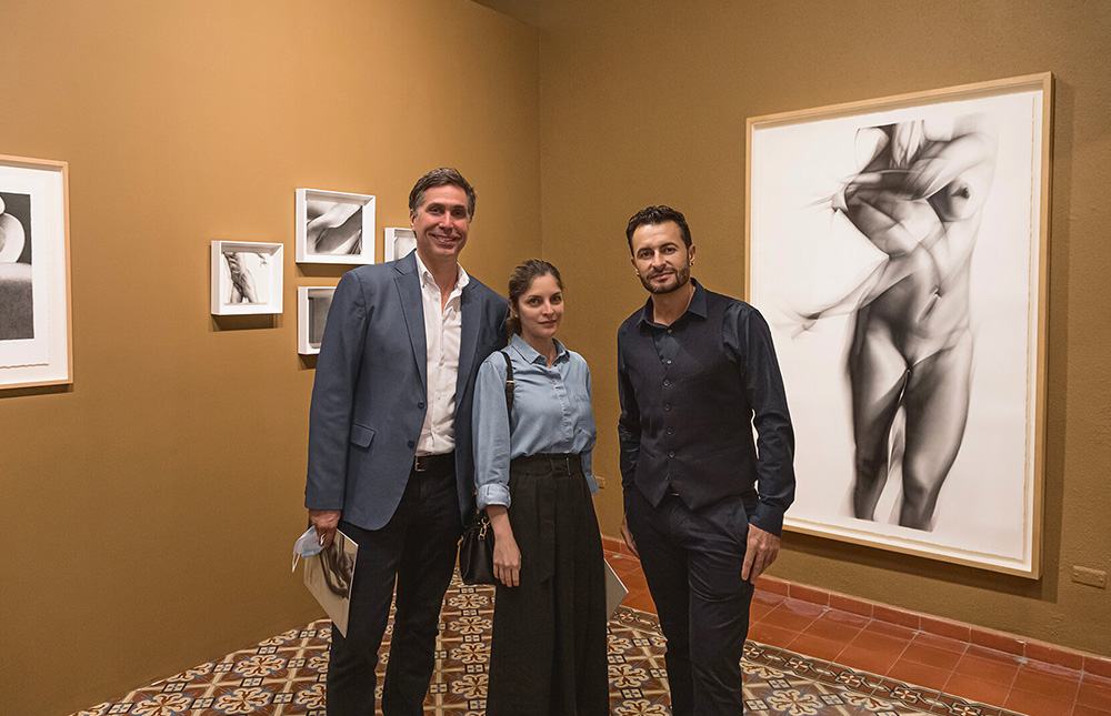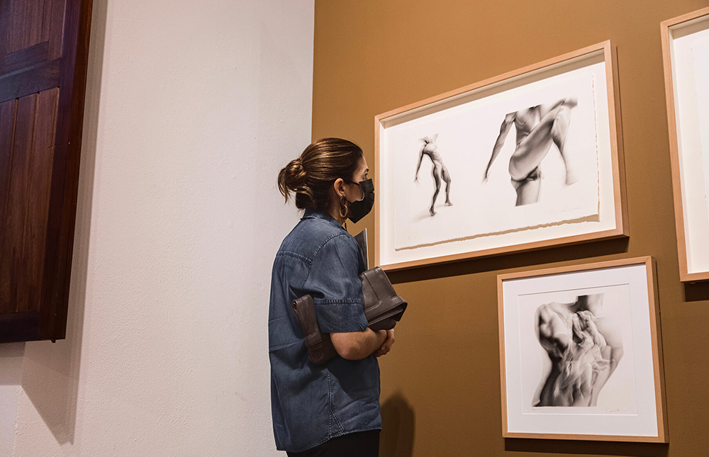 [....] Increíble también es que este trabajo y trazado, tan fino, hasta nervioso y compulsivo, se hizo, con grafito y carbón sobre papel de Arches, un soporte insuperable. ¡Gris, blanco, negro, y cuántos matices! Que produzca una ilusión de tinta es la magia menor… ya que se nos olvida que la piel, a la vez carnal o translúcida, tiene color. Estos cuerpos, tan bien construidos en su casi integralidad o sus detalles captados en “close-up”, vibran, tienen ritmo y líneas de fuerza. ¿Estará el movimiento detenido, el equilibrio estricto, la observación anatómica, definida y definitiva?